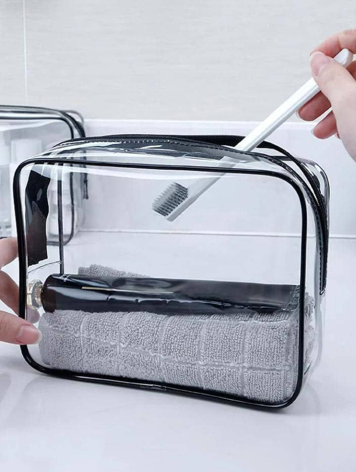 Trousse d'accessoire de Toilette Transparente vide  (couleur disponible: Rose, noire et le vert) Disponible à Lomé.