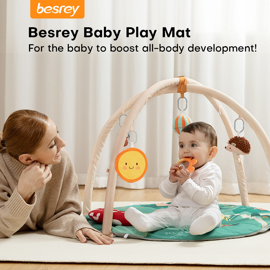 Confortable et favorable : rembourré d'un coussin en coton de 3,1 cm d'épaisseur et recouvert d'un tissu doux en peau de pêche, ce gymnase pour bébé permet de s'allonger, de s'asseoir ou de ramper confortablement. Une base texturée antidérapante empêche le déplacement pendant le jeu, et des supports robustes se forment. arcs stables qui empêchent l'effondrement.