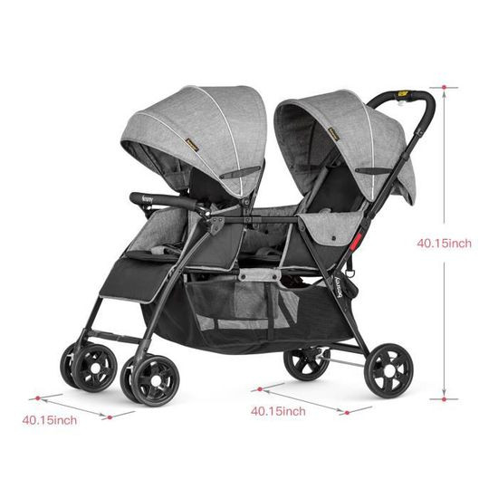 • Notre poussette jumelle est spacieuse, confortable et particulièrement légère avec seulement 10,9 kg. Facile à contrôler et à gérer, c'est le choix parfait pour les parents de jumeaux qui voyagent ou se promènent quotidiennement.