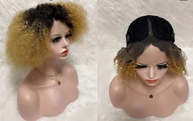 Perruque afro bouclée frontale en forme de T