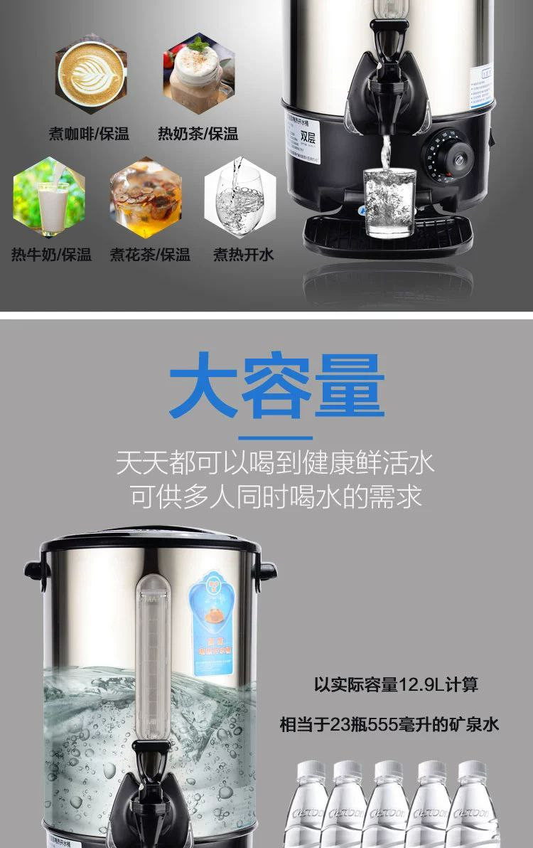 Seau d'eau bouillante Hengfu double couche 304 bouteille d'eau bouillante commerciale seau d'isolation de thé au lait en acier inoxydable seau à thé noir chaudière à eau