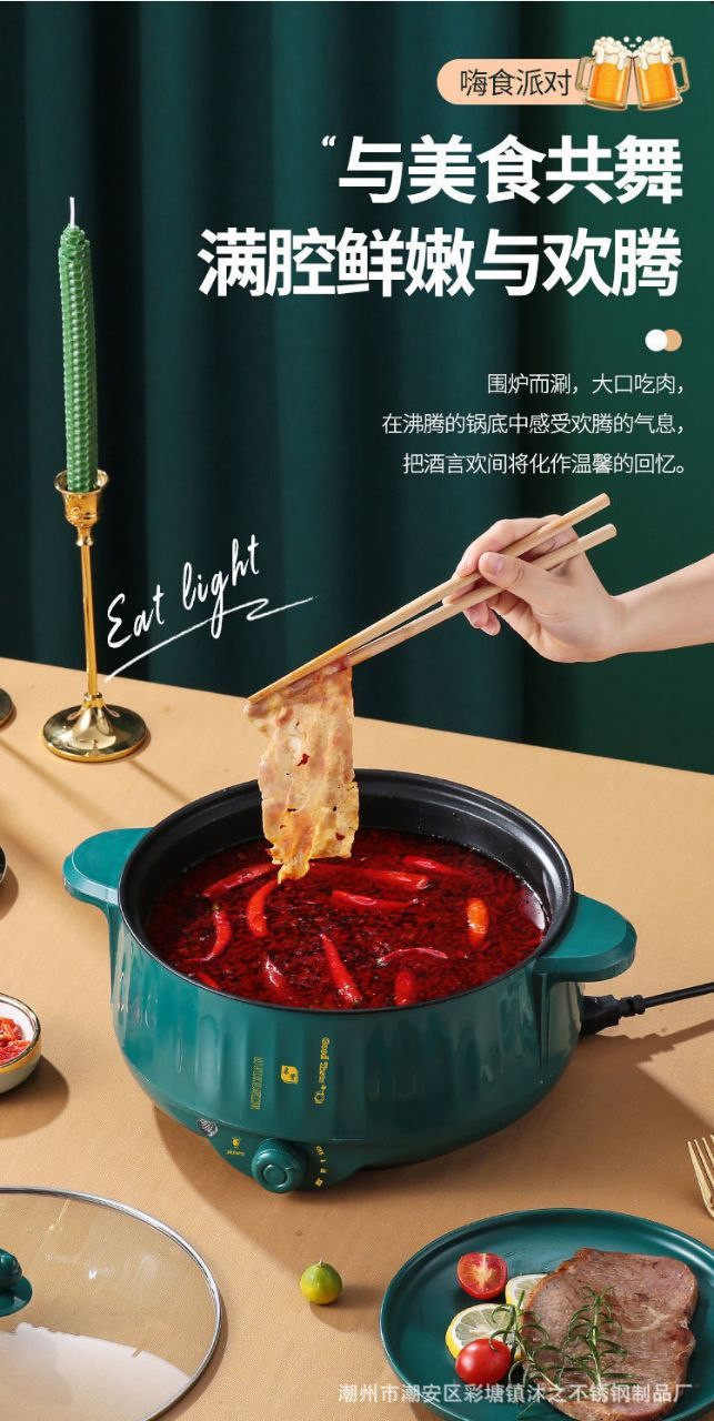 Marmite électrique pour dortoir étudiant, marmite tout-en-un pour cuire à la vapeur, frire et sauter, marmite antiadhésive, marmite électrique à emporter, cuiseur vapeur double couche