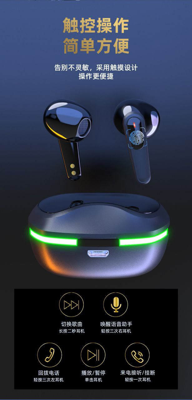Casque Bluetooth sans fil PRO60 TWS empreinte digitale tactile haute qualité lumière respiratoire colorée écouteurs de jeu à faible latence