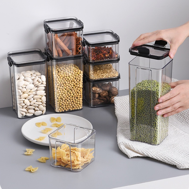 0.46L - Boîte de rangement en plastique scellée transparente carrée épaissie - boîte de stockage de fruits secs et de céréales - boîte de nourriture en plastique réservoir de stockage de thé et de céréales diverses