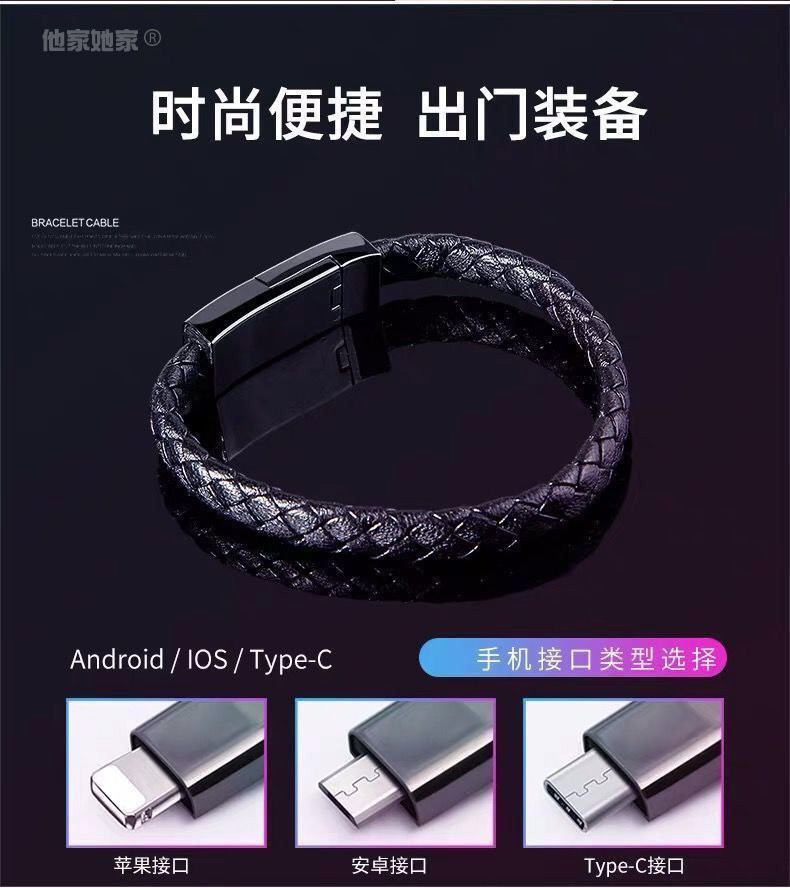 Câble de données fashion de type bracelet - convient à Apple Vivo Huawei Android Xiaomi - câble de charge pour powerbank a charge rapide