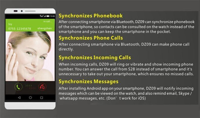 DZ09 nouvelle montre intelligente compatible avec carte SIM et Bluetooth