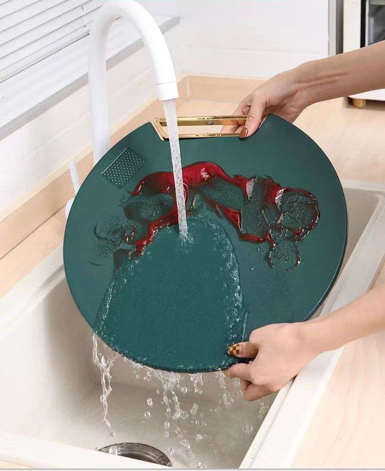 Planche à découper en plastique de qualité alimentaire, planche à découper ronde verte, rotative, planche, verticale double face anti-moisissure