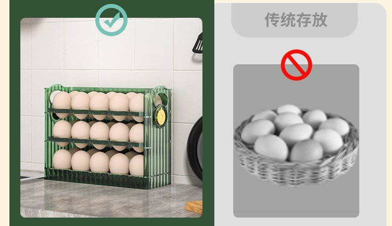 Boîte de rangement des œufs côté réfrigérateur réversible grande capacité divisée cuisine à trois couches bac à œufs transparent et aux œufs de canard 30trous