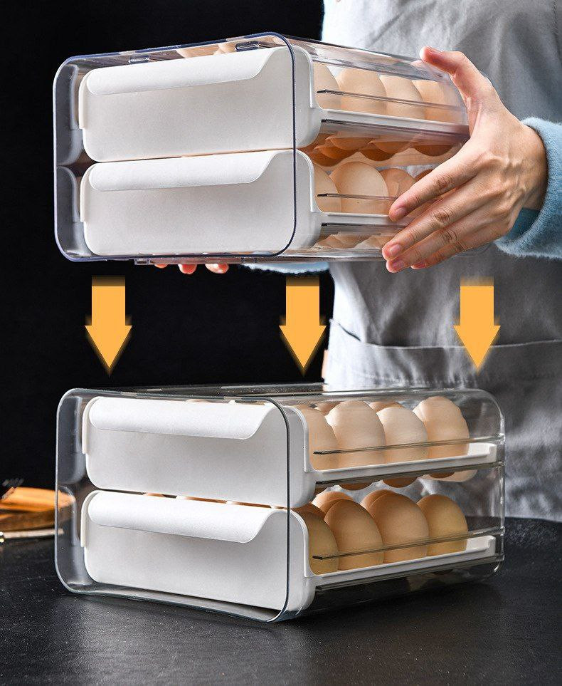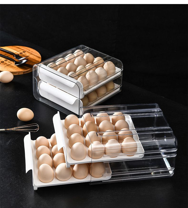 Boîte à double tiroir de conservation des œufs rangement cuisine conservation des œufs 32 transparente