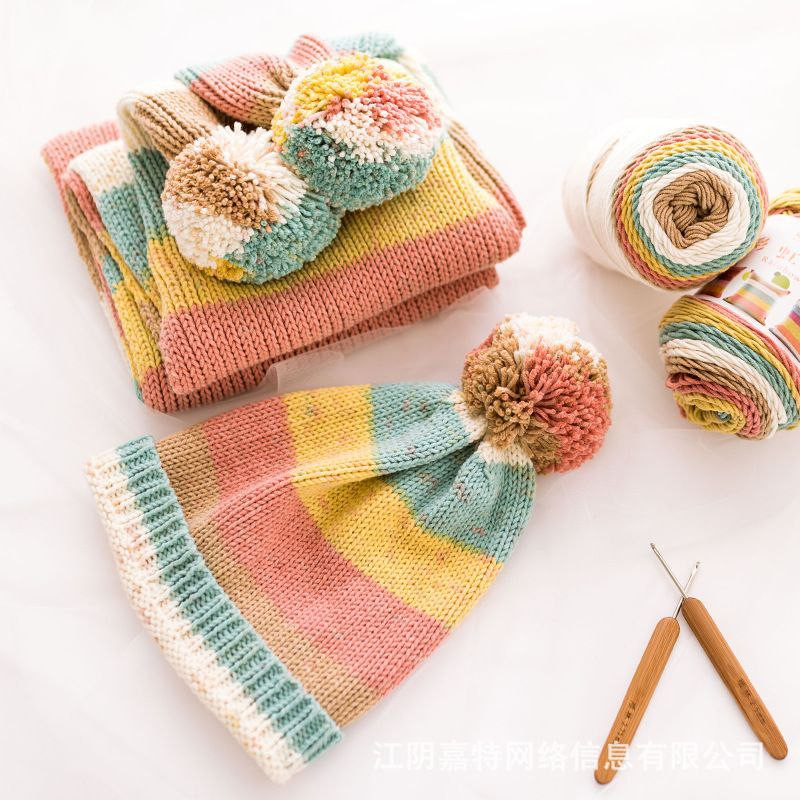 Laine 5 brins arc-en-ciel coton tricoté à la main poupée en laine oreiller couverture lait coton laine 100g