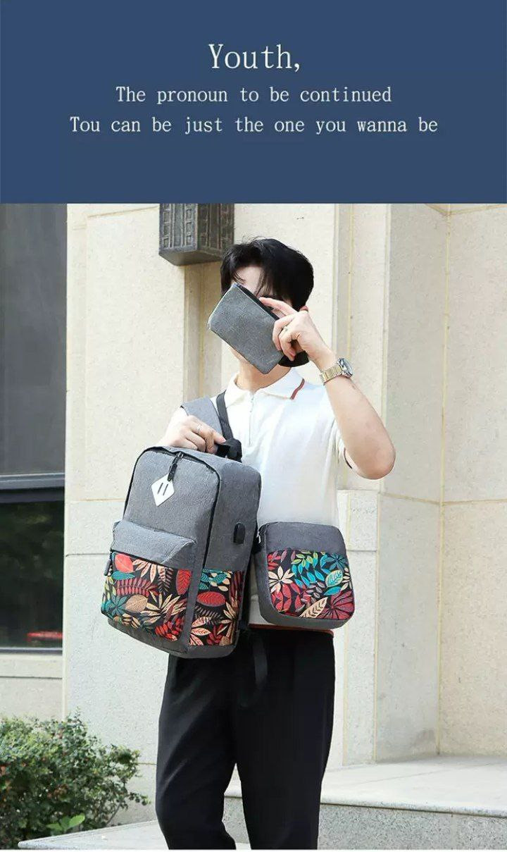 Nouveau sac à dos trois pièces transfrontalier feuille d'érable grande capacité multifonctionnel chargement USB sac à dos extérieur en tissu Oxford pour hommes