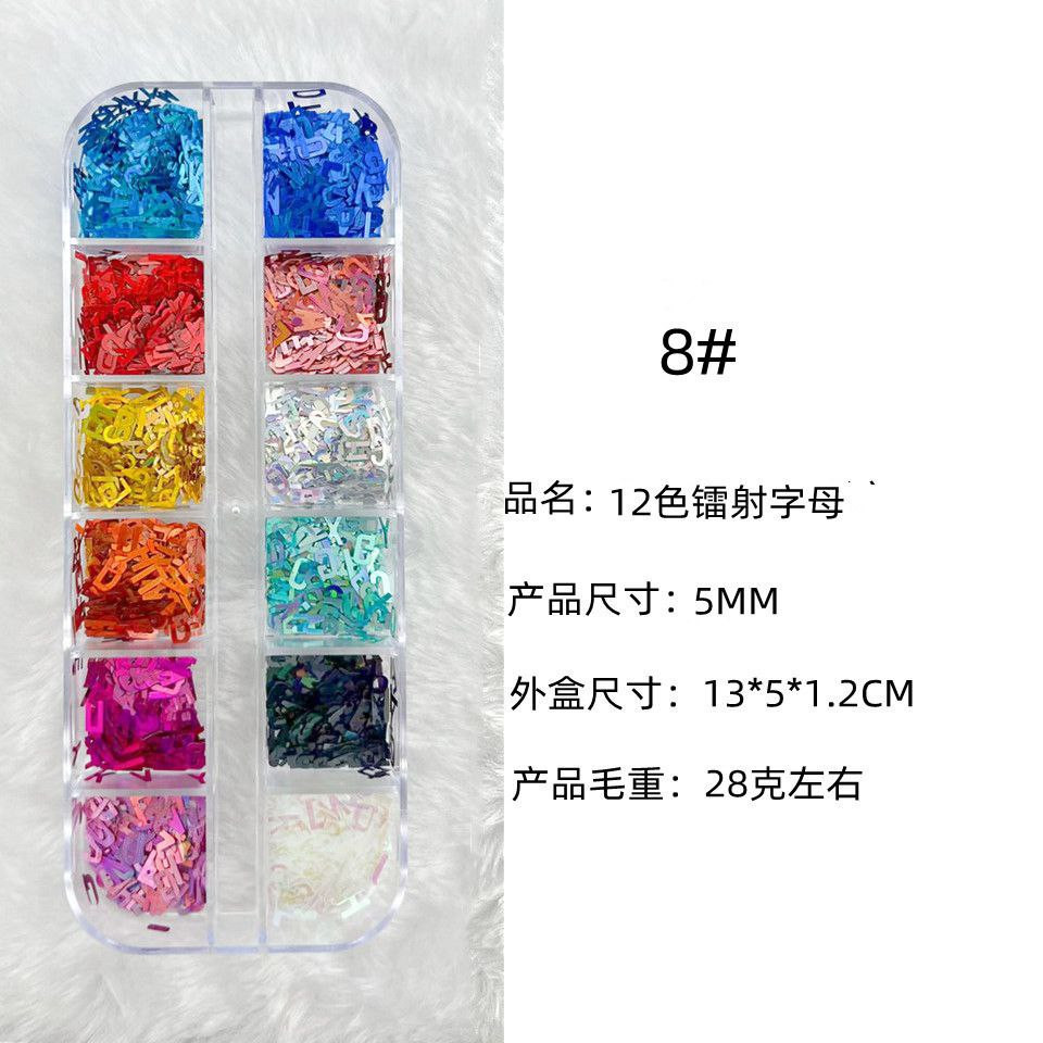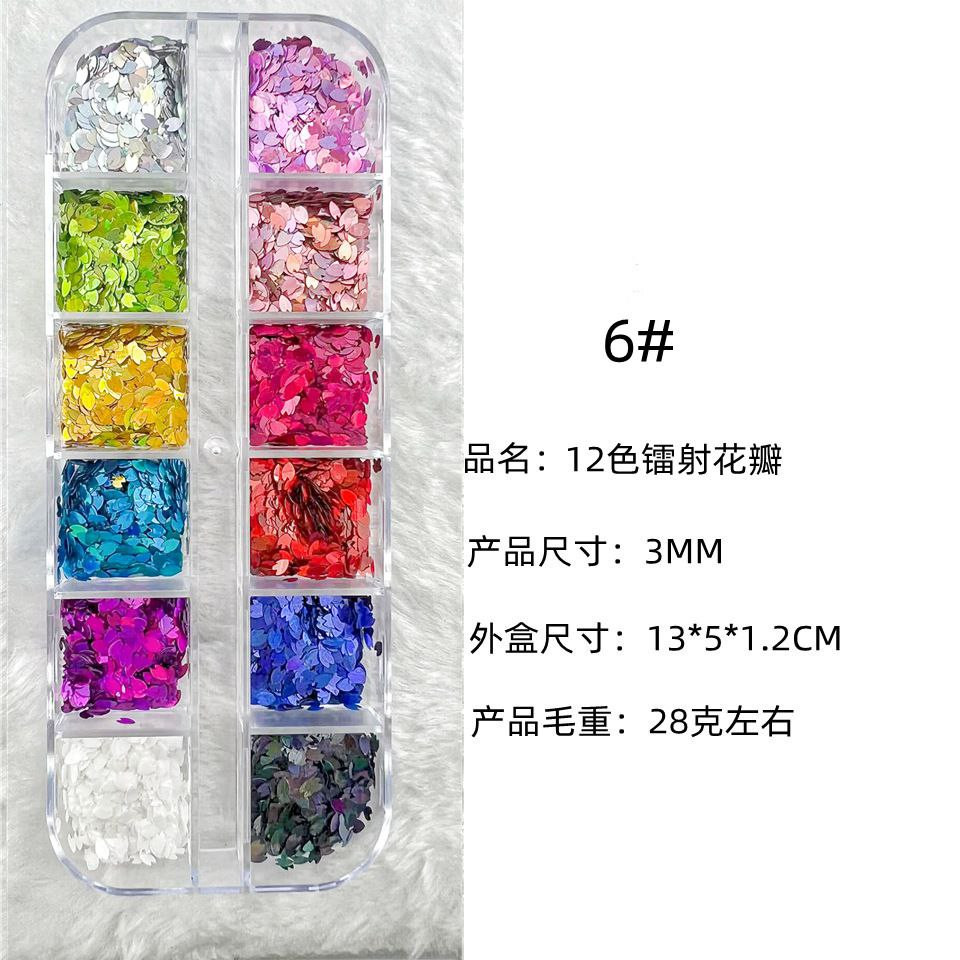 Manucure 12 cadres laser fins paillettes de forme spéciale papillon étoile à cinq branches parapluie feuille d'érable 20 accessoires pour ongles rose pailleté