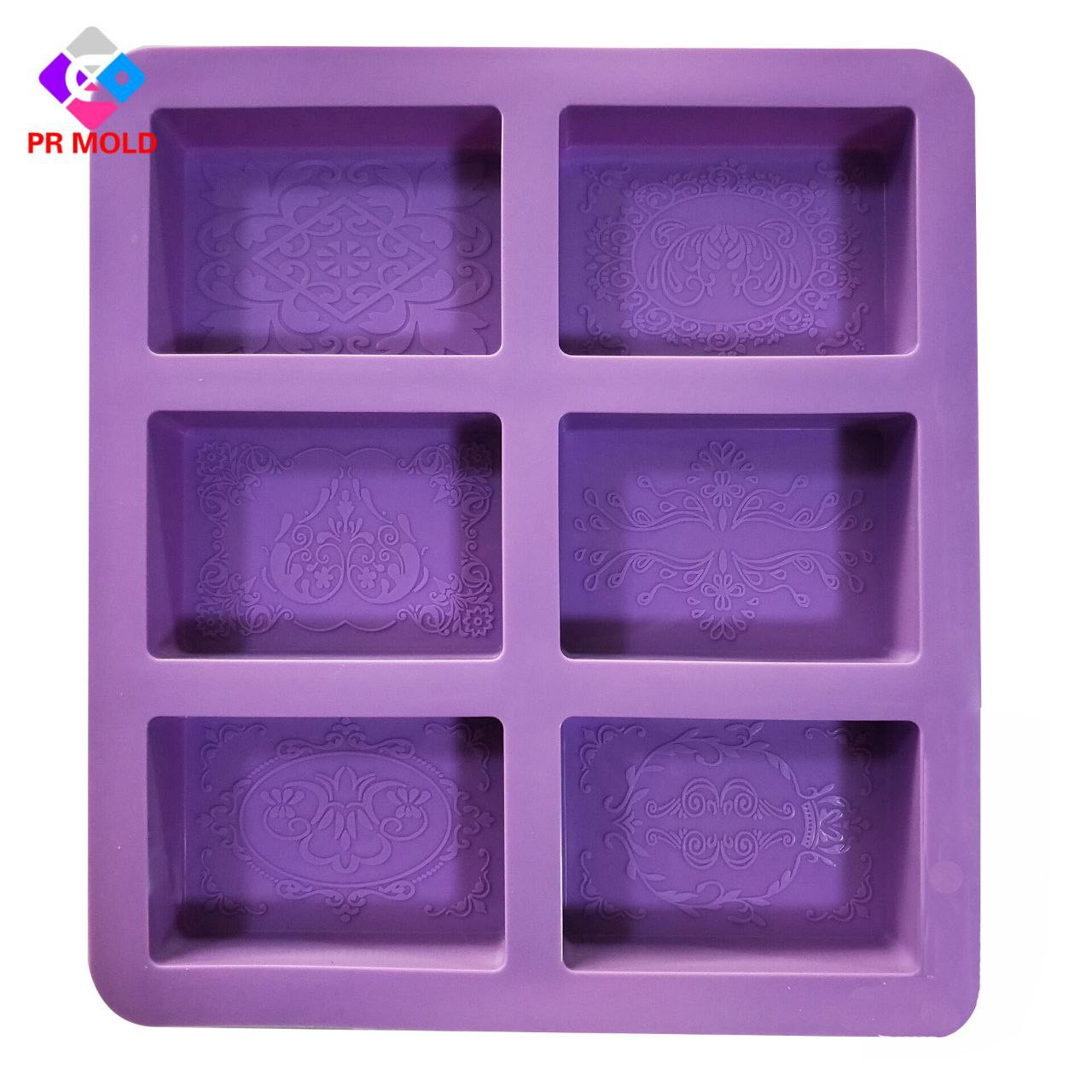 Six trous consécutifs ovales en relief dentelle fleur savon moule dentelle motif savon moule fait main savon gâteau silicone moule
