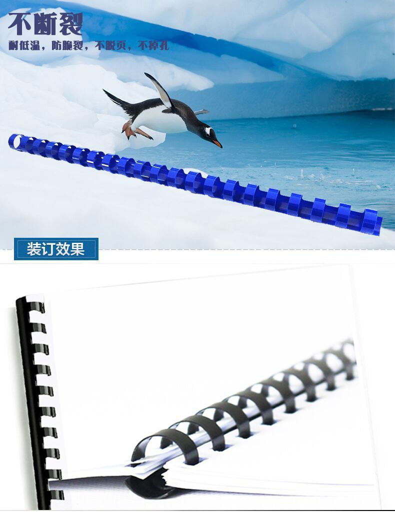 Tablier de reliure en plastique de 8 mm, 100 pièces in pack, anneau de reliure à 21 trous, couleur noir et blanc, reliure en peigne
