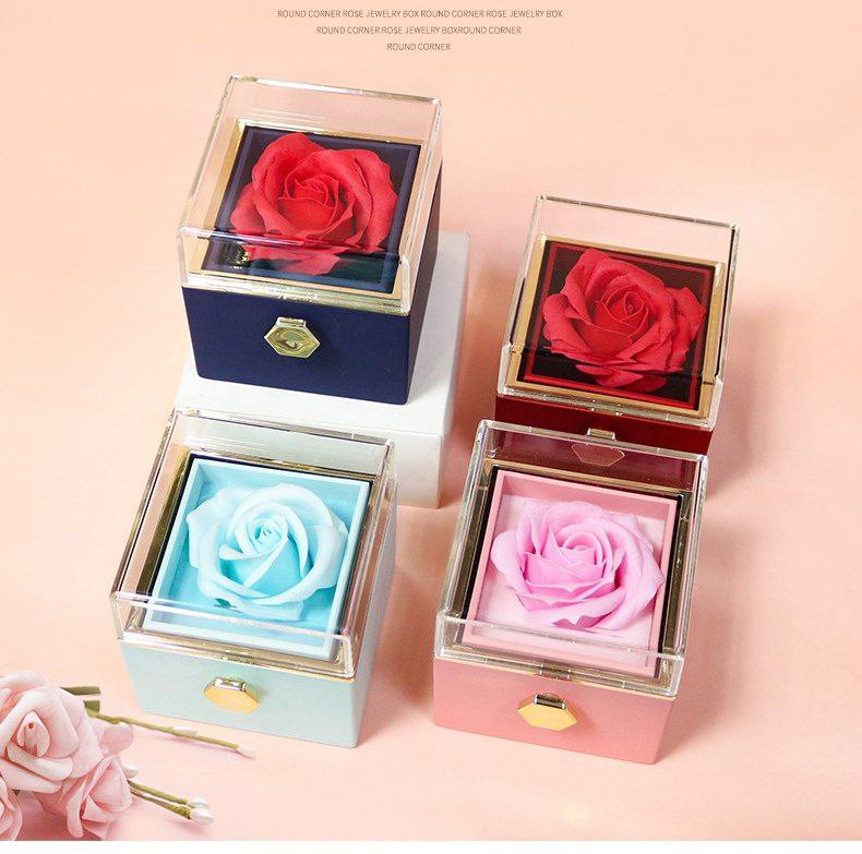 Boîte-cadeau rotative créative de fleur éternelle de la Saint-Valentin boîte à bijoux rose boîte à bagues boîte à collier boîte d'emballage de bijoux