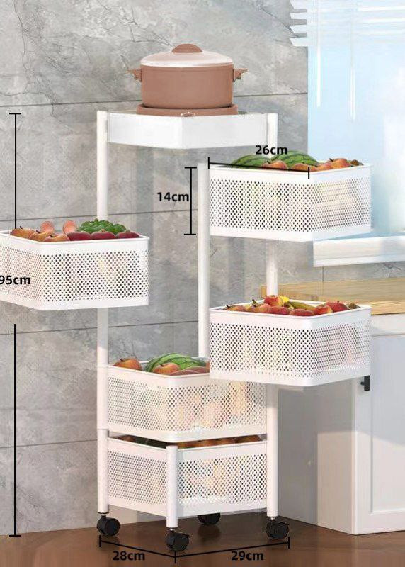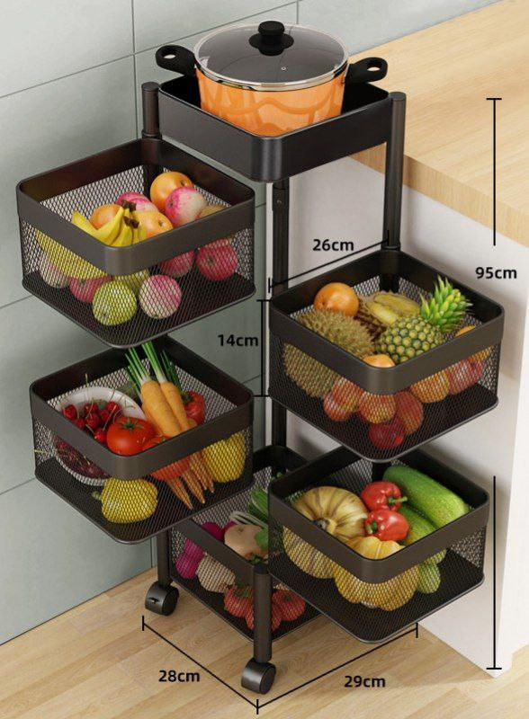 Étagère à légumes en acier au carbone domestique sans installation, étagère rotative de cuisine carrée multicouche amovible a 5 tiers