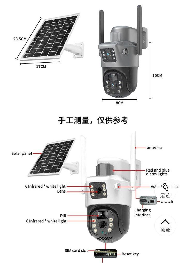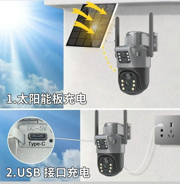 Caméra v380 extérieure, téléphone portable à 360 degrés, télécommande panoramique à distance, moniteur solaire haute définition