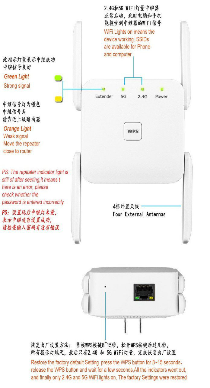 Répéteur wifi AC1200M DE WIRESS DUAL-BAND 5G / 2.4G, Amplificateur de réception WiFi de 1200m Amplificateur Signal sans fil Expansion EXPANSION AMHANCER 5G Répéteur de routage
