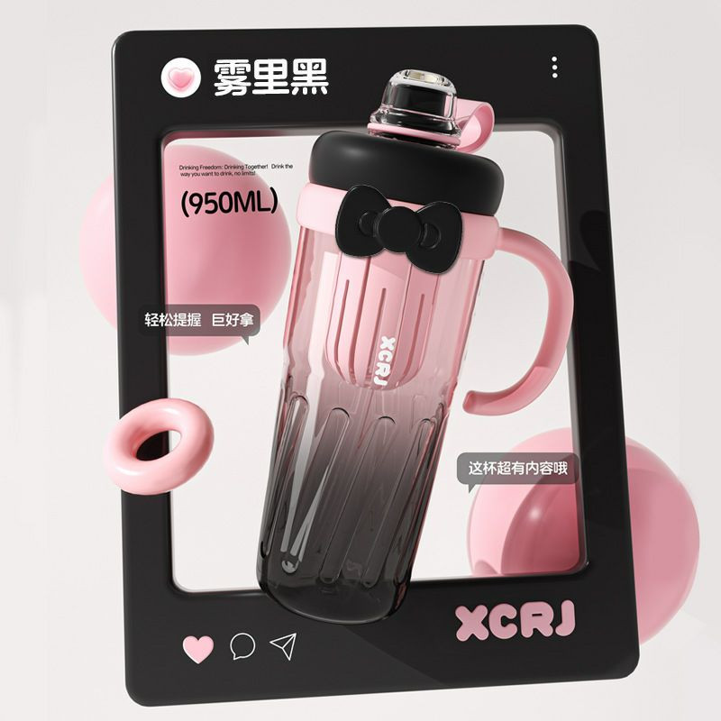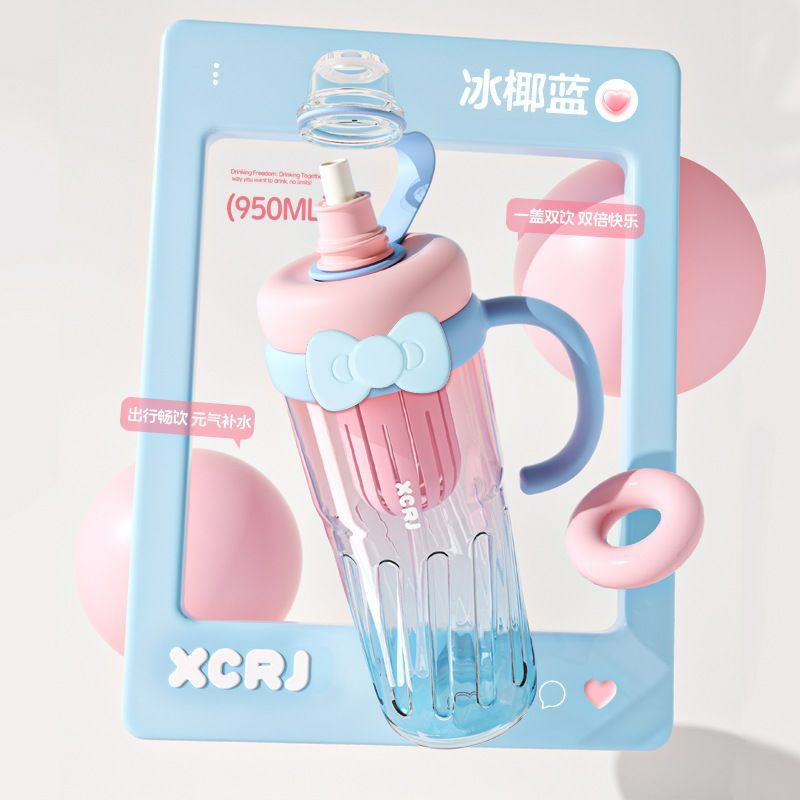 Tasse en plastique, bouteille d'eau, gourde de grande capacité de paille pour les étudiants portable à haute température résistant à l'eau