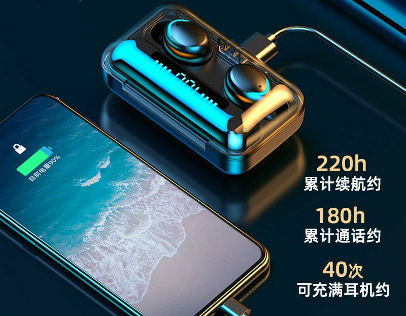 Les casques écouteurs Airpod Bluetooth sans fil populaires F9-5C avec étui de chargement sans fil, grande batterie Double-Earg F9 Affichage numérique Digital Affichage de sports,