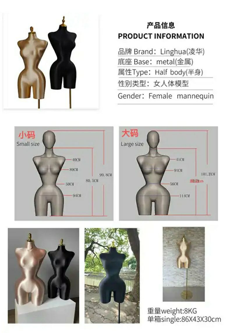 Nouveaux mannequins BBL féminins abondants, grande taille avec des fesses grasses, taille fine, modèle à demi-corps affichage stand de vêtements, robe, jupe, épingle d'exposition de vêtements, base réglable, fenêtre d'affichage accessoires mannequin