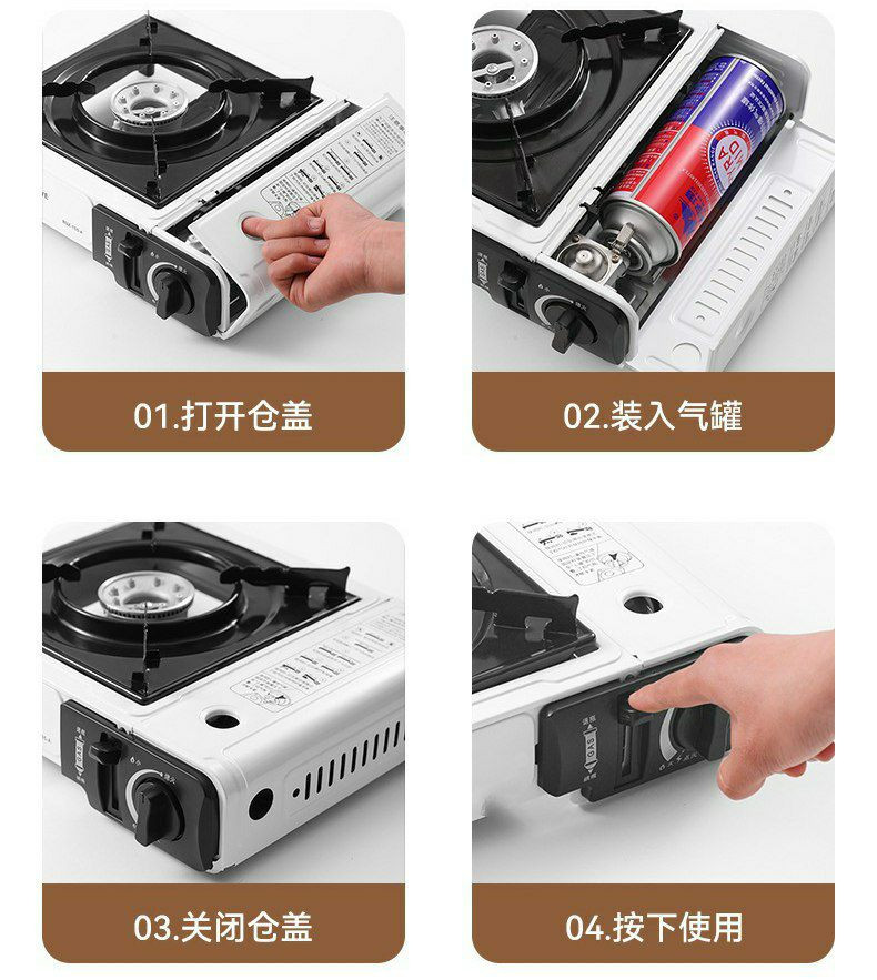 Boîte pour un réchaud à gaz portable de la marque SRTJ, modèle BDZ-155-A.