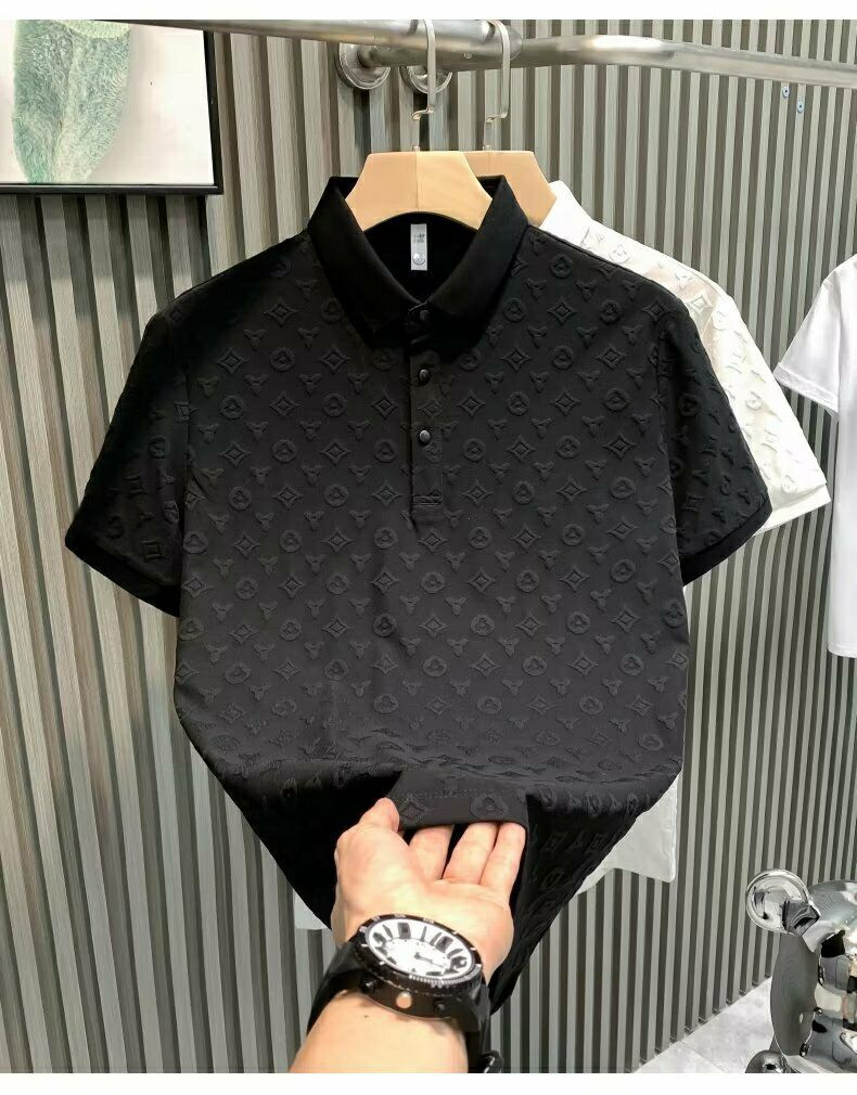 Polo à manches courtes pour hommes affaires Premium décontracté Jacquard revers demi manches T-shirt col haut
