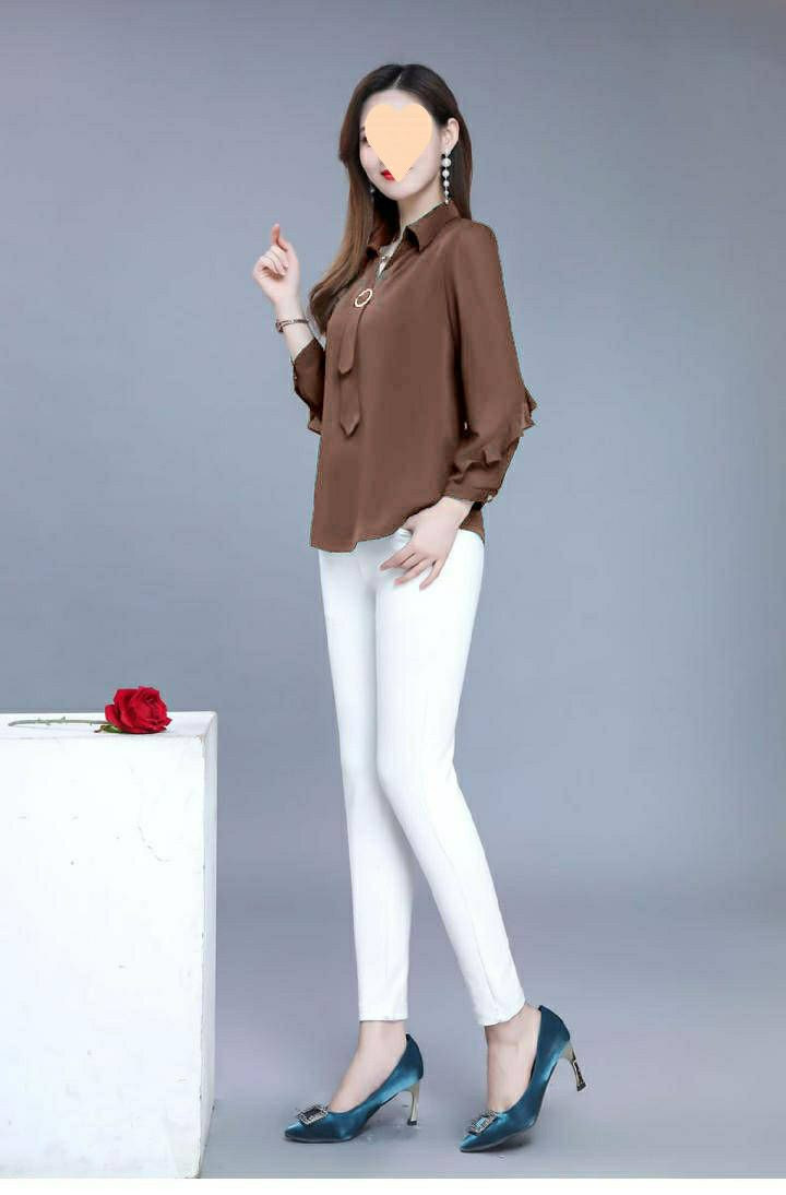 Chemises à manches longues pour femmes d'âge moyen, chemise à col en mousseline de soie à la mode slim