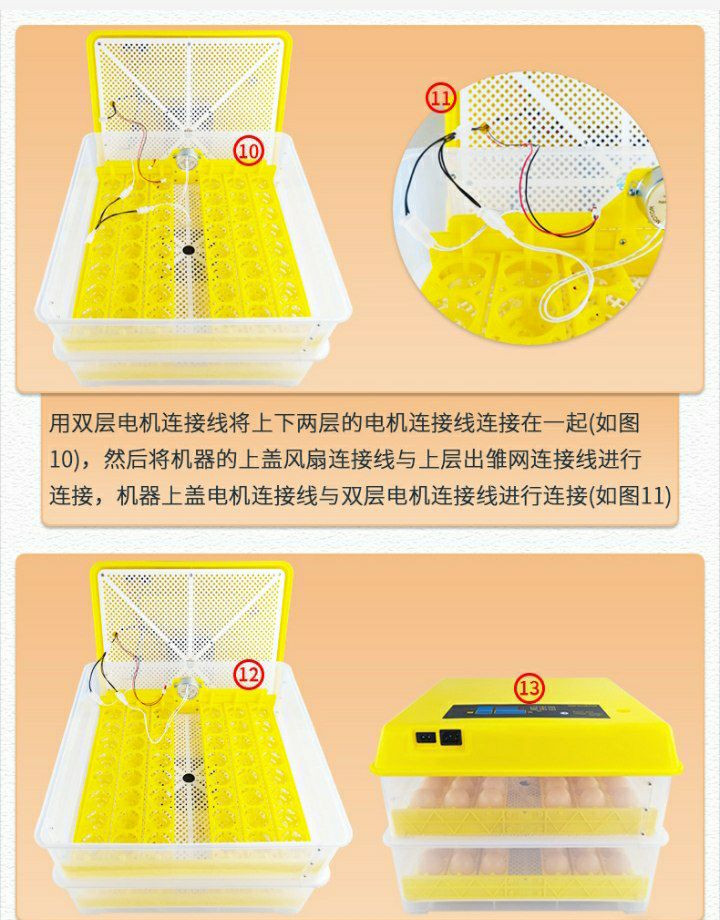Le couvercle transparent permet de surveiller facilement le processus d'incubation et l'éclosion des poussins.
