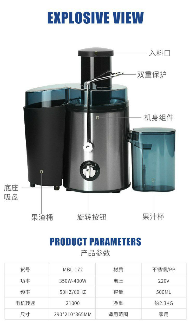 Presse-agrumes transfrontalier séparation du jus de résidus ménagers machine à jus originale machine à fruits petite machine à jus machine de traitement de fruits de grand diamètre