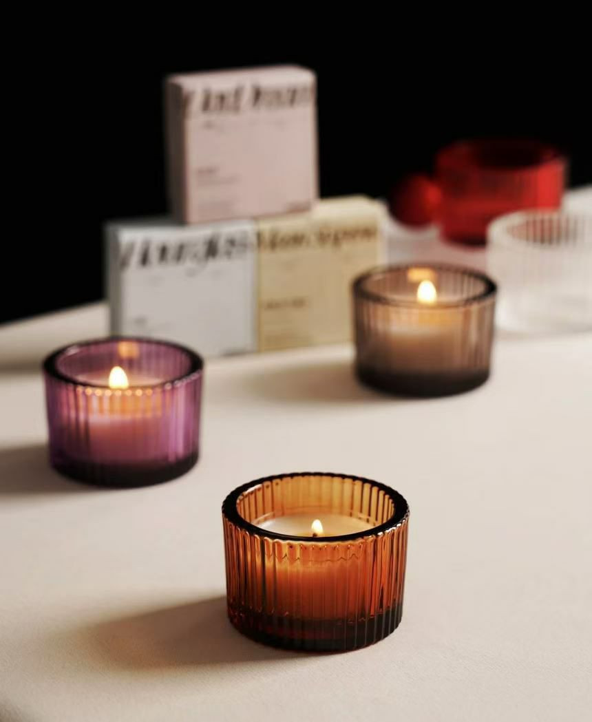 Photophores en verre côtelé de la marque NBEADS, parfaits pour la décoration intérieure.