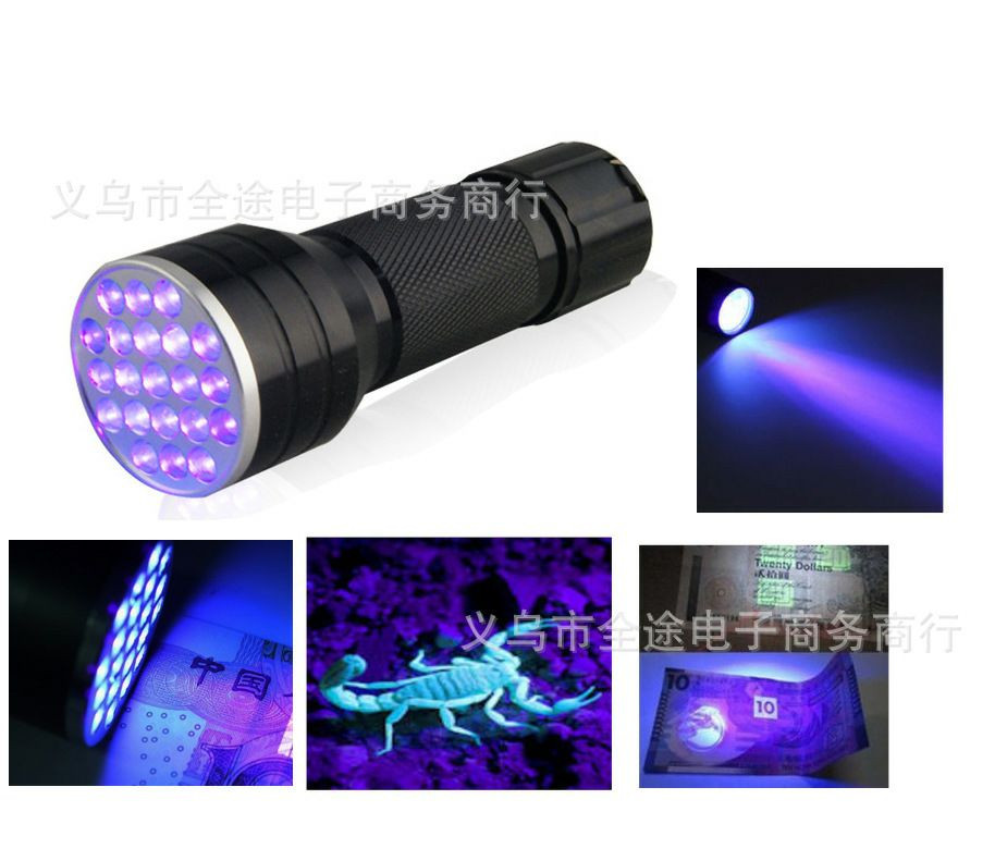 Lampe de poche UV à 21 LED, idéale pour la détection de taches.