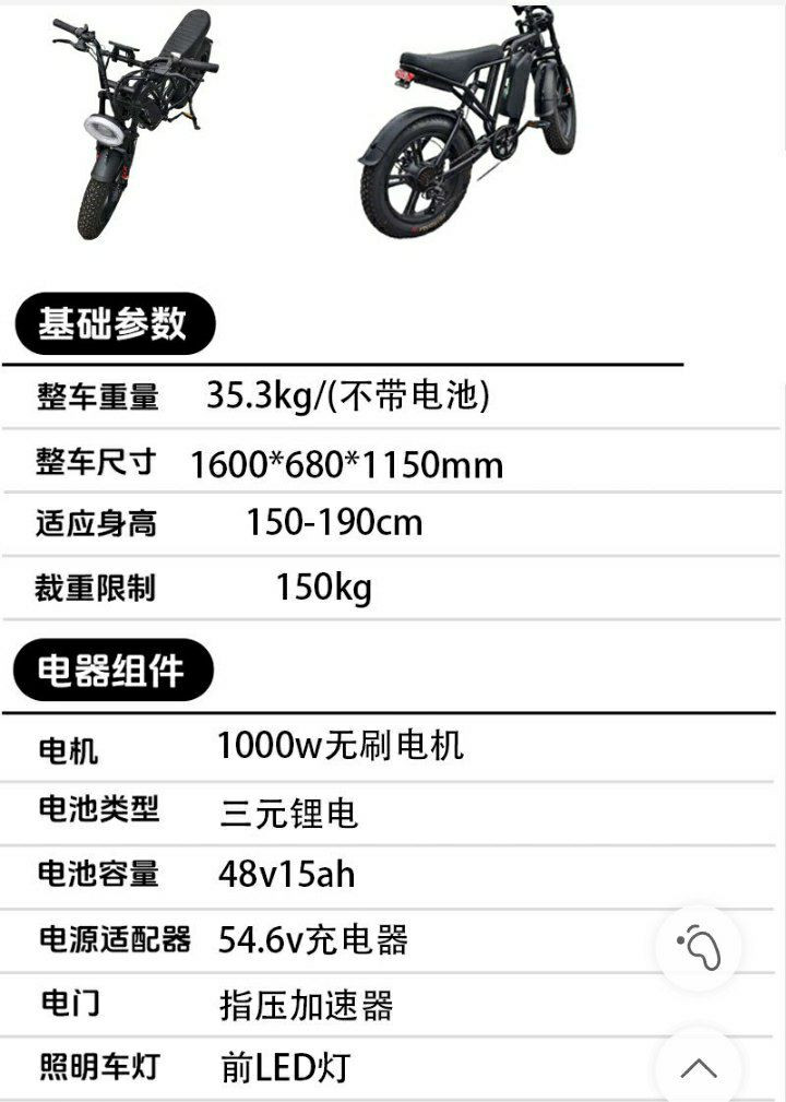 Design : Style cyclomoteur avec des pneus larges de 20 pouces, idéal pour différents terrains.
