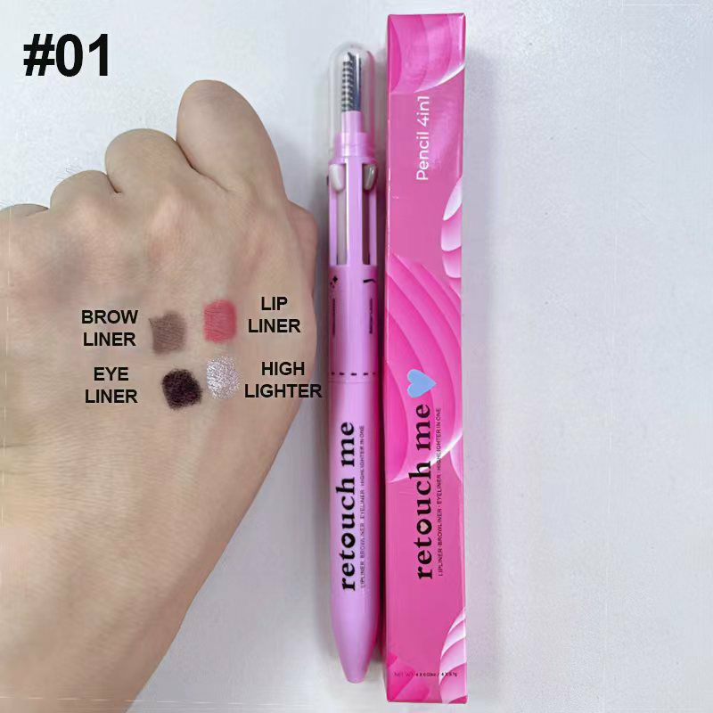 Il combine quatre fonctions de maquillage en un seul stylo : crayon à sourcils, eye-liner, surligneur et crayon à lèvres.