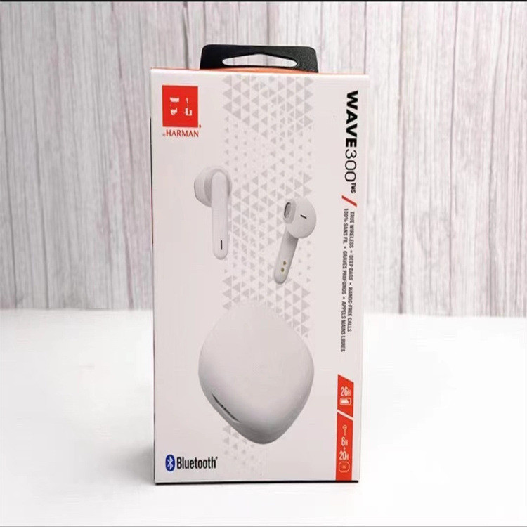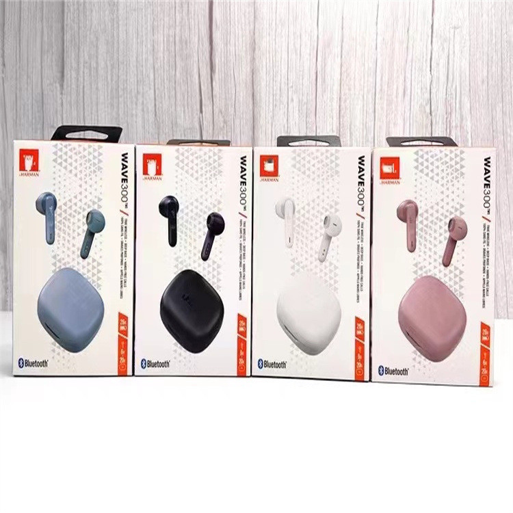 Ecouteurs Bluetooth JBL WAVE300 sans fil avec fonction anti-bruit, conçus pour les sports et les appels téléphoniques, et adaptés à la musique
