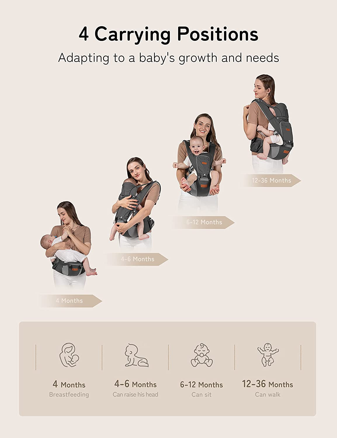 besrey Porte-bébé face à l'avant, siège de hanche d'été, porte-kangourou papa, porte-bébé hybride pour tout-petit, porte-corps ergonomique pour homme, filet de transport pour bébé facile, porte-bébé souple vers l'avant